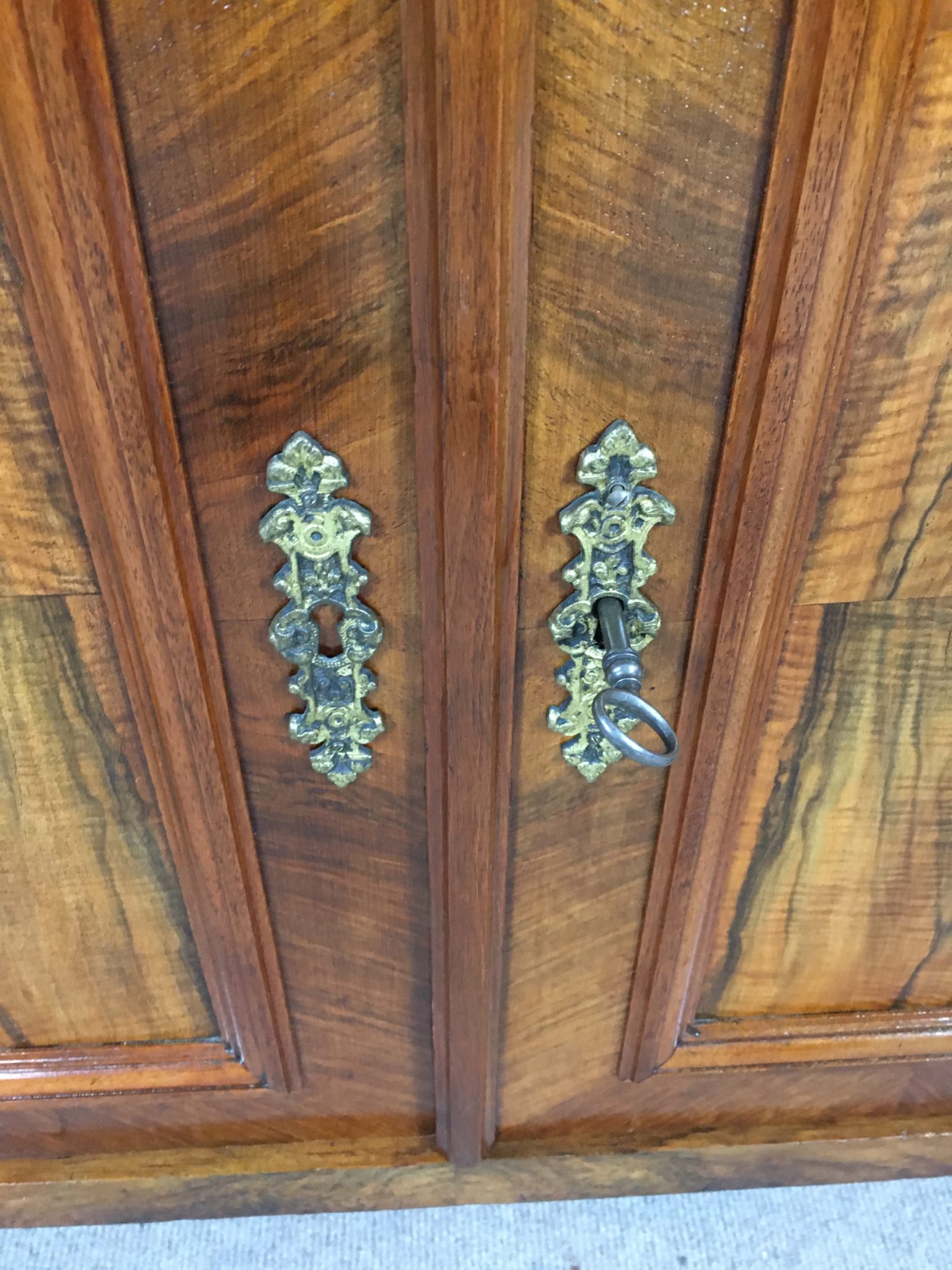 Zustand: restauriert, keine markanten Schäden, normale Alters- und Gebrauchsspuren, Türschlüssel für Schranktür vorhanden, Schlösser funktionstüchtig