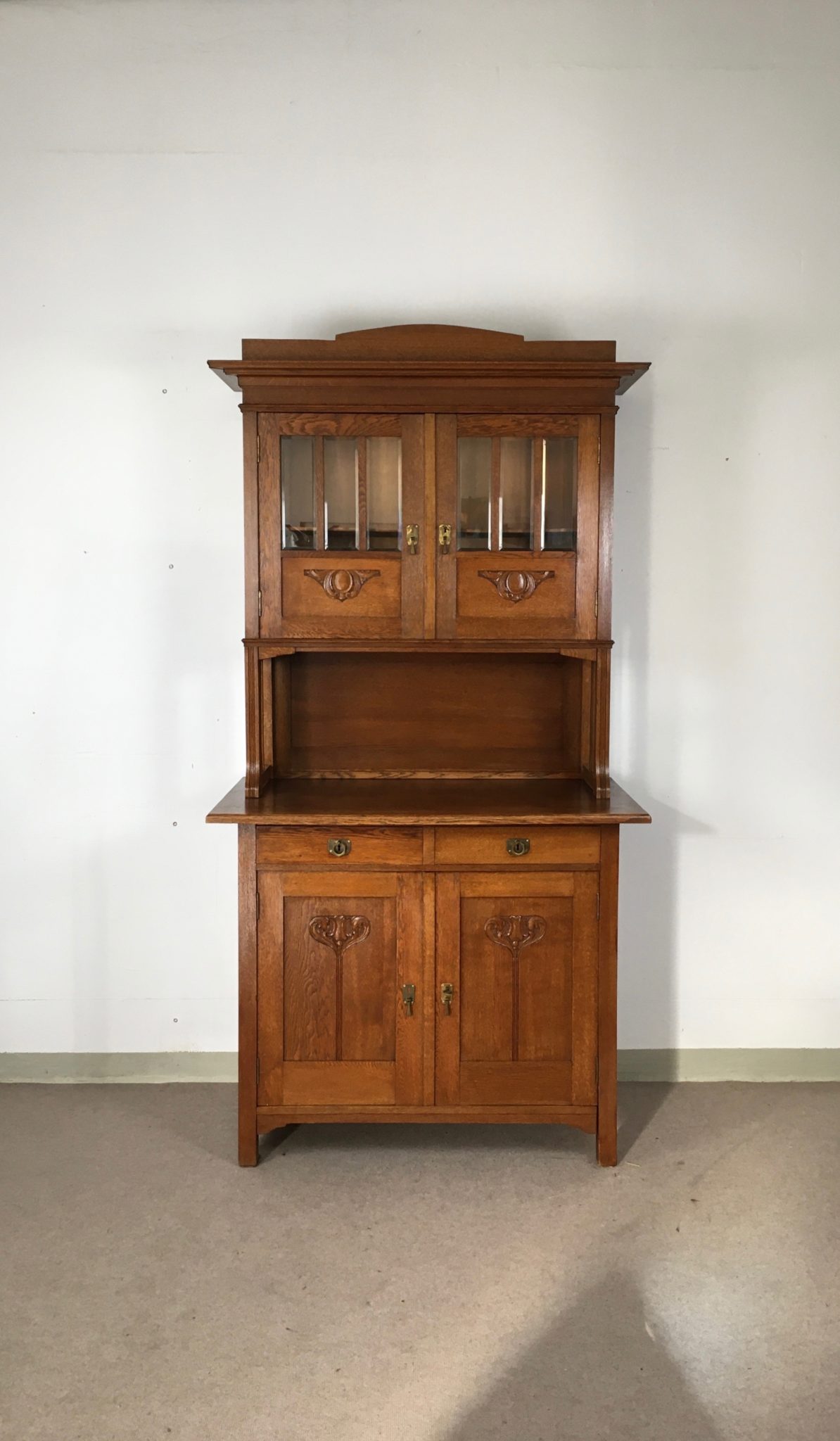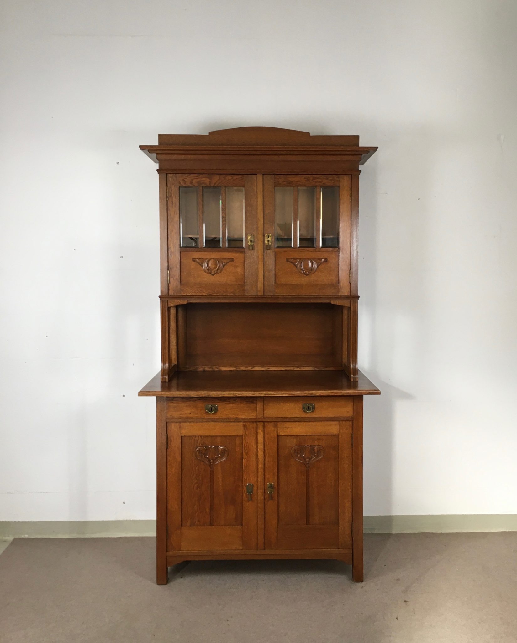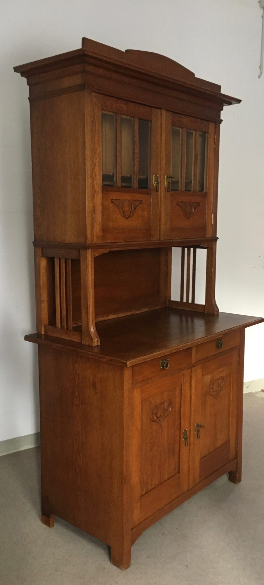 Antikes Buffet, Aufsatzschrank, Jugendstil, Eiche, restauriert