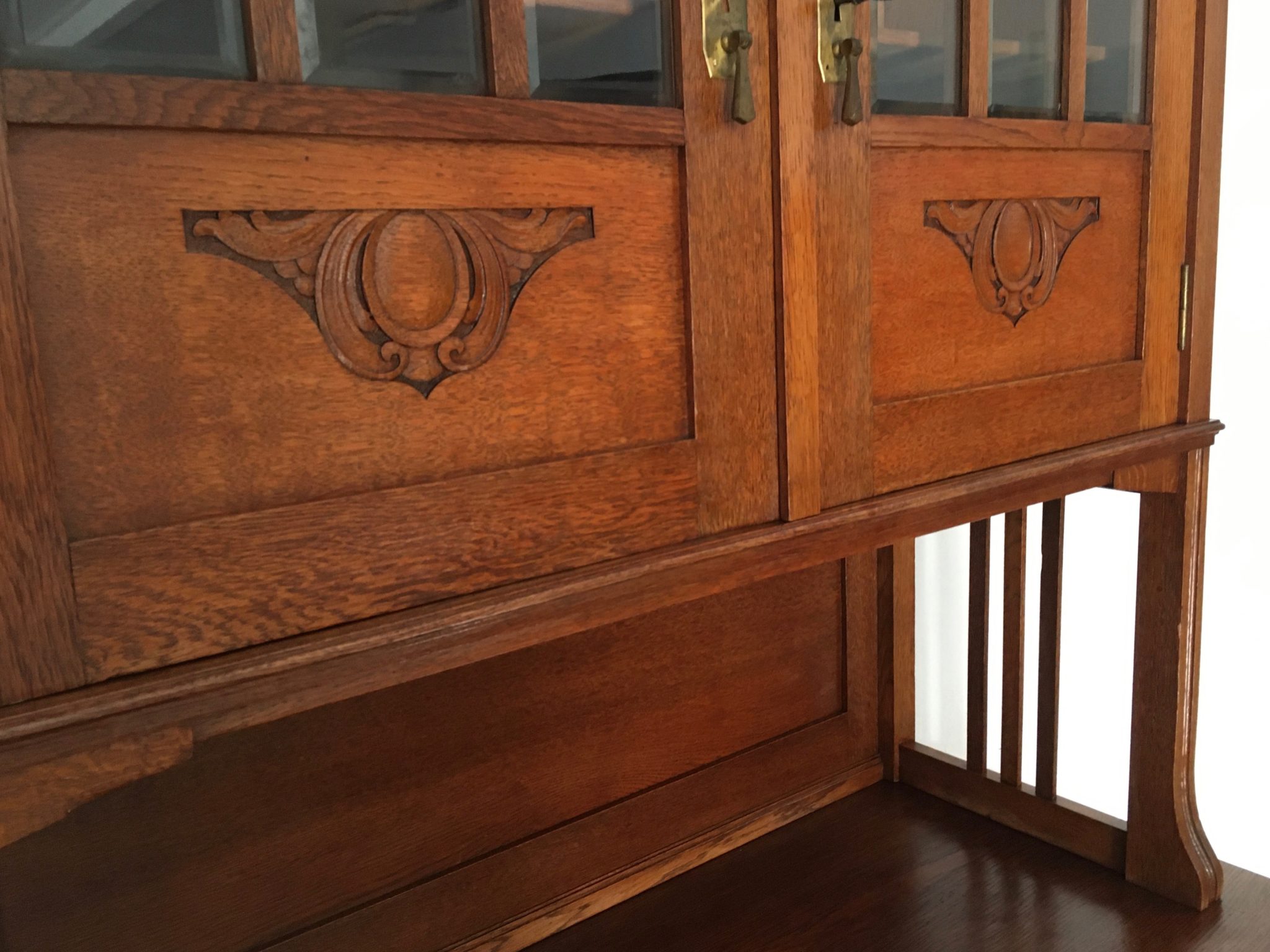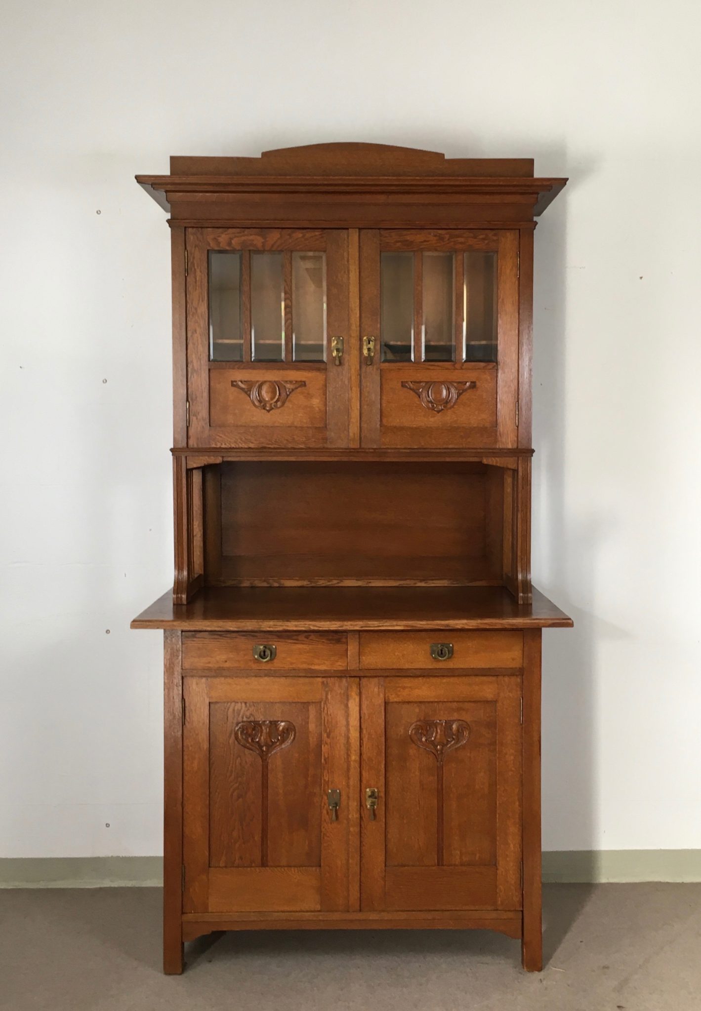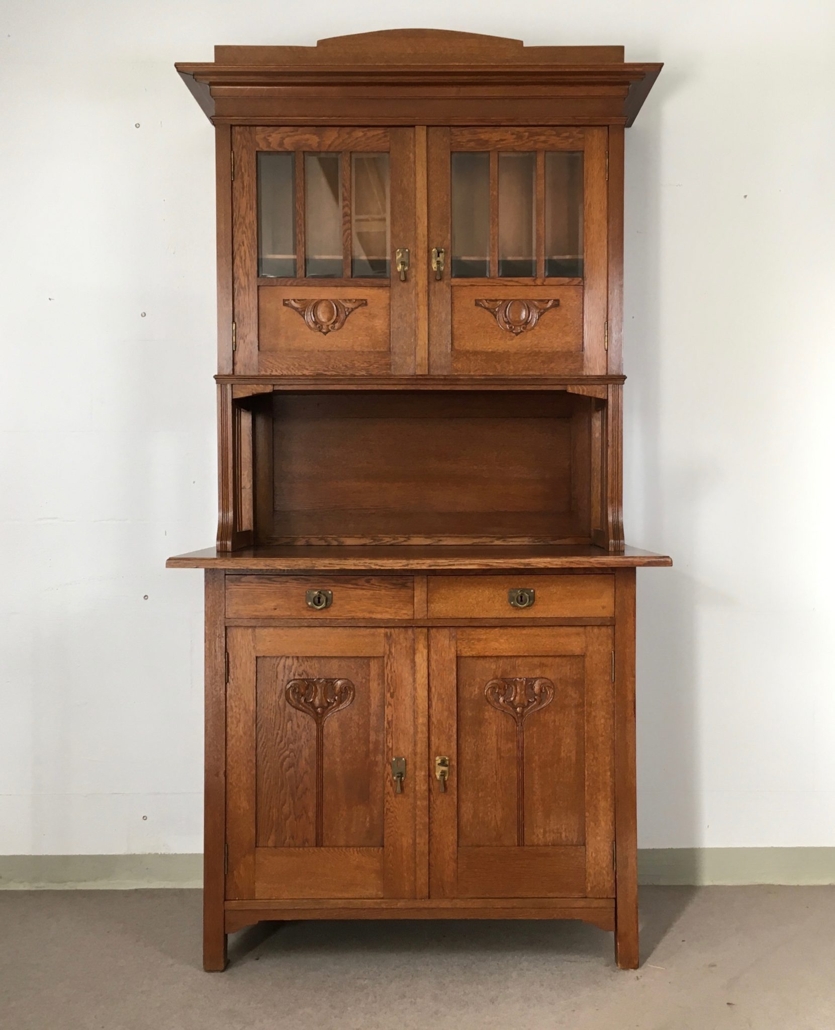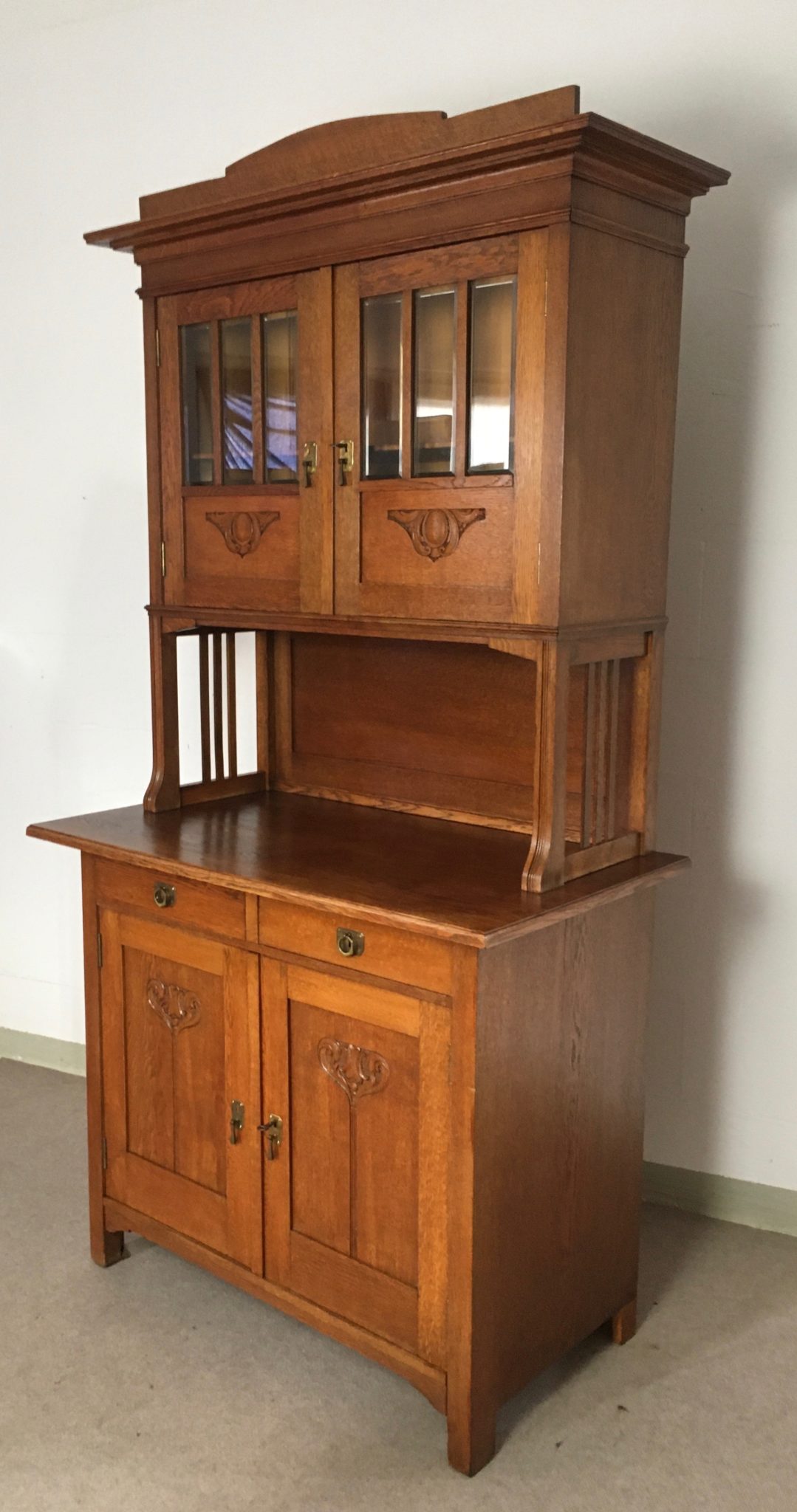 Antikes Buffet, Aufsatzschrank, Jugendstil, Eiche, restauriert
