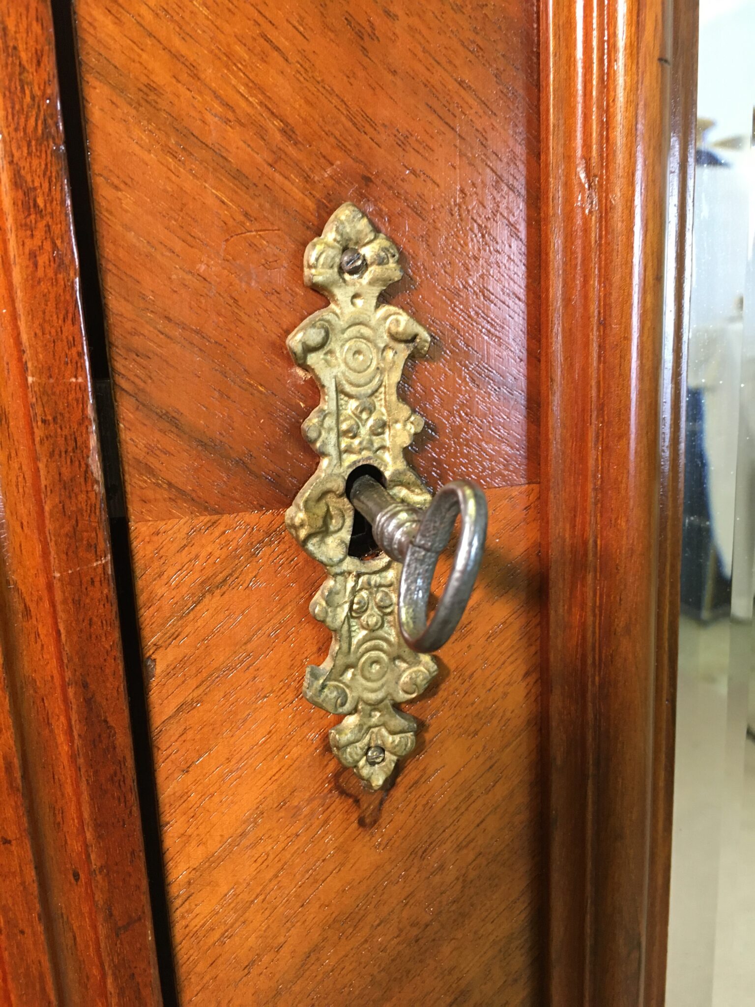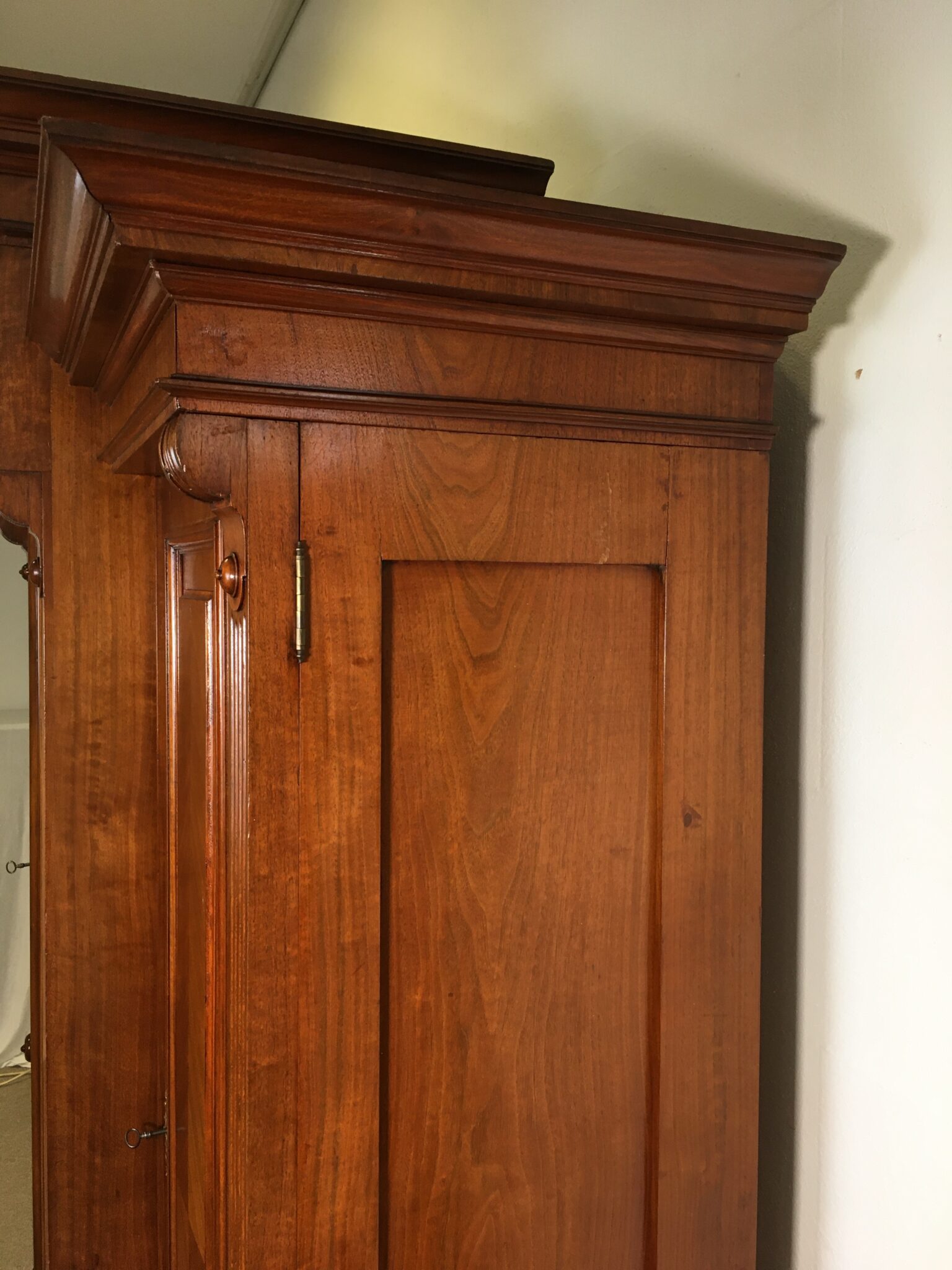 Zustand: wohnfertig, neue Schellackpolitur, Schlösser funktionstüchtig, Schlüssel vorhanden, keine markanten Schäden, normale Alters- und Gebrauchspuren